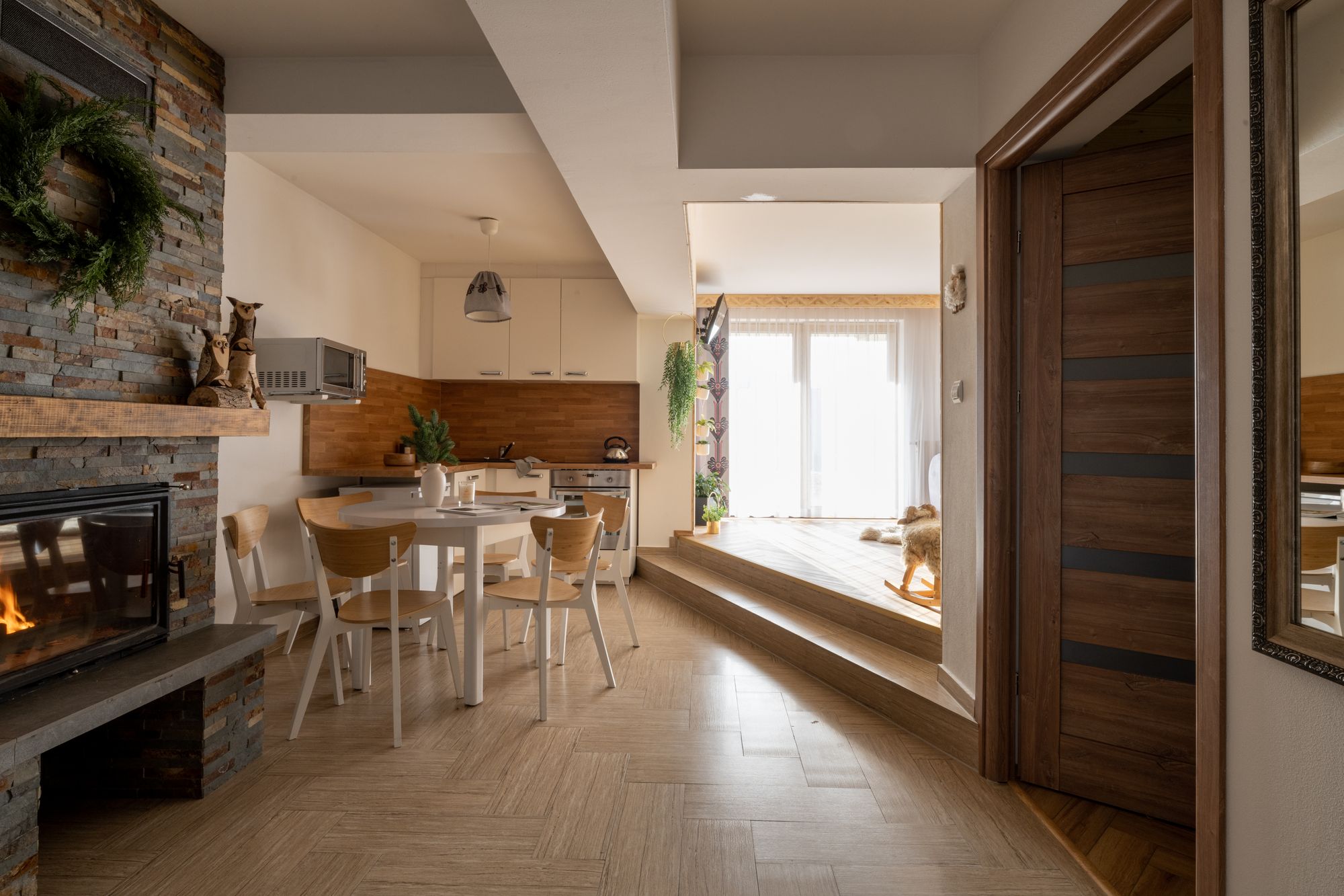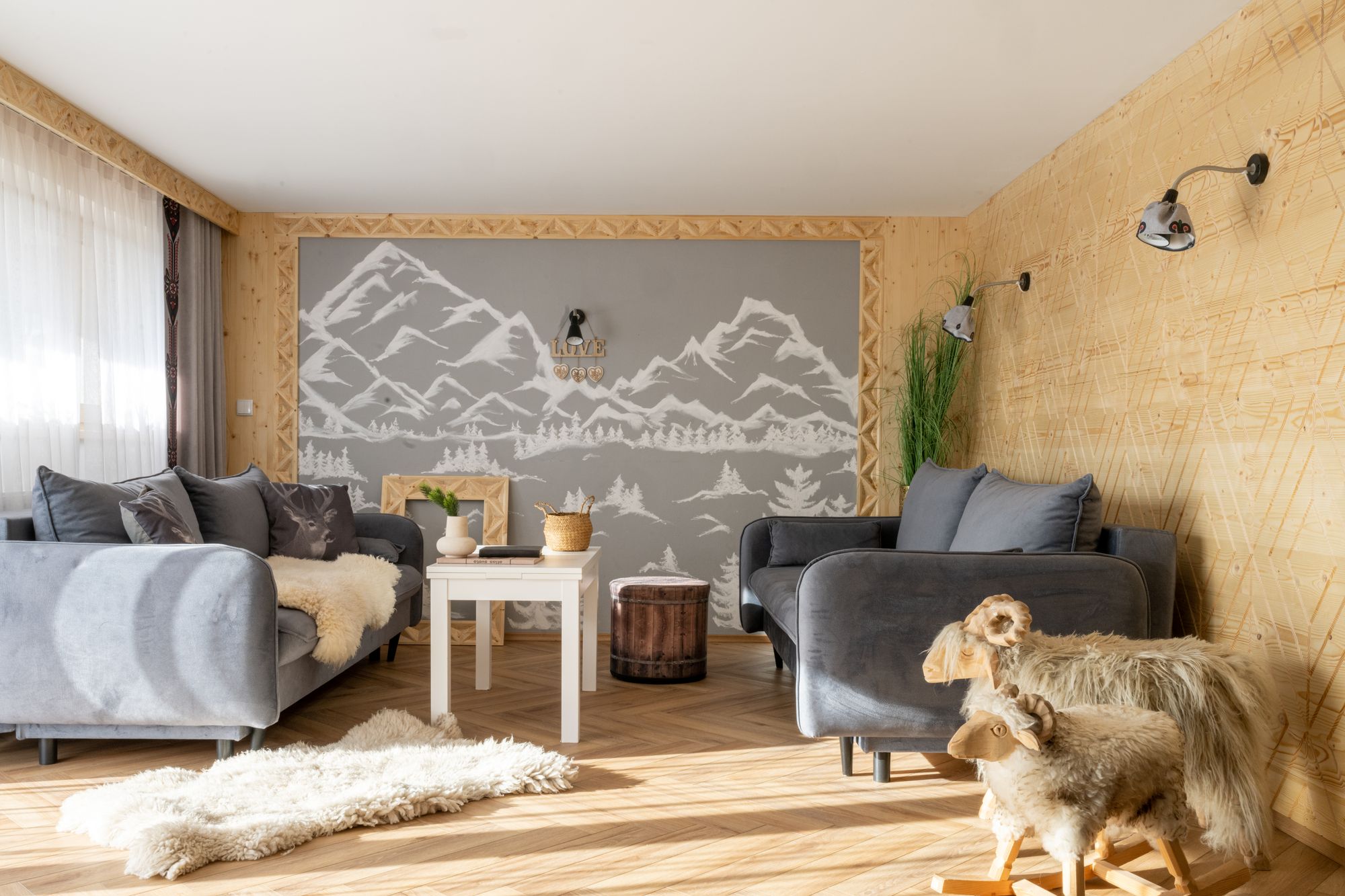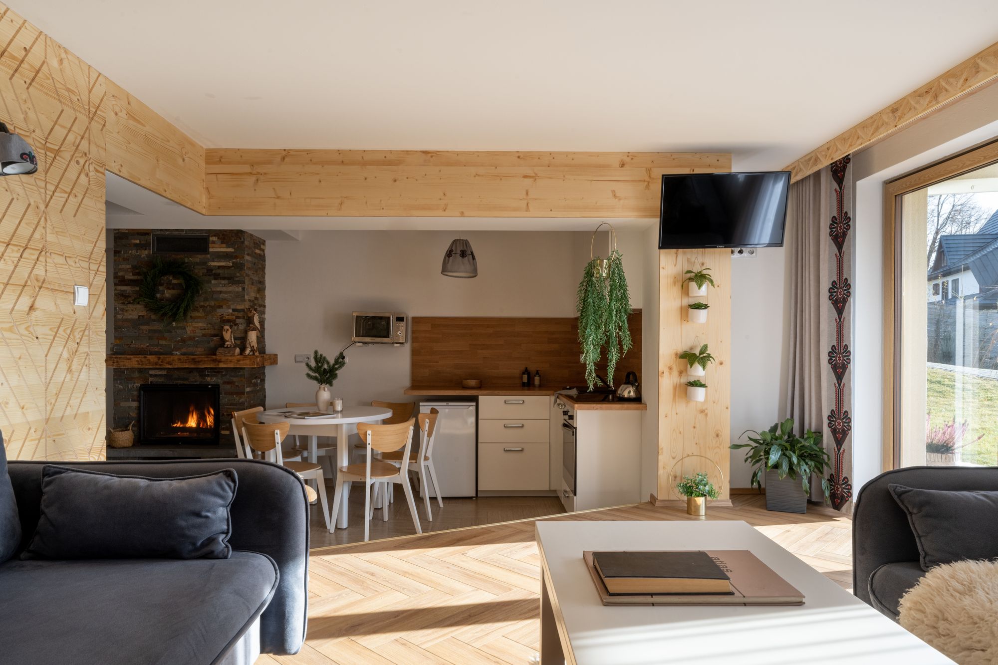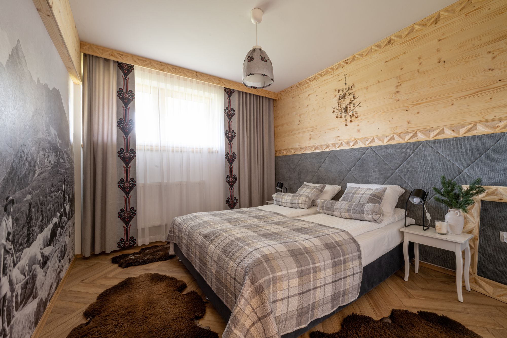 To przytulny romantyczny apartament znajdujący się na niskim parterze w budynku górnym. Z okien jest widok na Tatry. Wystrój i malowidła na ścianie w pełni oddają romantyczny klimat gór.