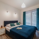 Apartament z dużym widokowym tarasem (widok na Tatry) mieści się na parterze dolnego budynku. Jest idealny dla 4 osób a nawet 5-6 osób. To przestronny apartament z kominkiem w nowoczesnym stylu stykającym się z naszą góralską tradycją. Wystrój oparty jest na typowym góralskim tybecie w kolorze turkusowym. W łazience znajduje się jacuzzi. Cały apartament dostosowany jest do osób poruszających się na wózku inwalidzkim. Odpowiedni dla rodzin z małymi dziećmi, dla których bezpłatnie wypożyczamy łóżeczko, wanienkę, krzesełko do karmienia.